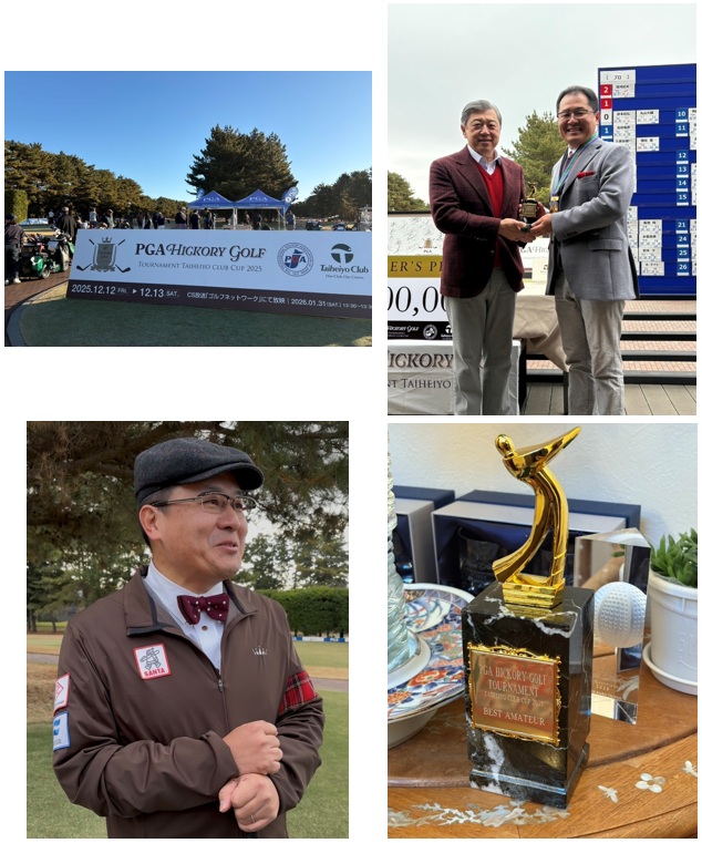 吉川専務が太平洋クラブ 八千代コース(千葉)で開催されたPGAヒッコリーゴルフトーナメントに出場し、 見事、アマチュアの部で優勝(総合5位タイ)いたしました。日本プロゴルフ協会(PGA)公式記録として行われた本大会は、ヒッコリーシャフトを使用する、ゴルフの原点と技術の本質が問われる特別な競技です。FLAG 記事:https://flag-golf.jp/news/2025-12-13/