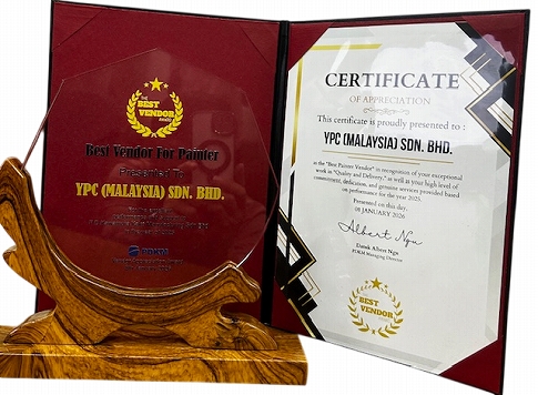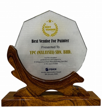 マレーシア工場(YPC (MALAYSIA)SDN.BHD.)がPD河村化工マニュファクチャリング(Perodua Daihatsu Kawamura kako Manufacturing Sdn.Bhd.)様より、日頃の取組みをご評価頂き、昨年に続き、『Overall Best painter Vendor(最優秀塗装業者)』を受賞いたしました。